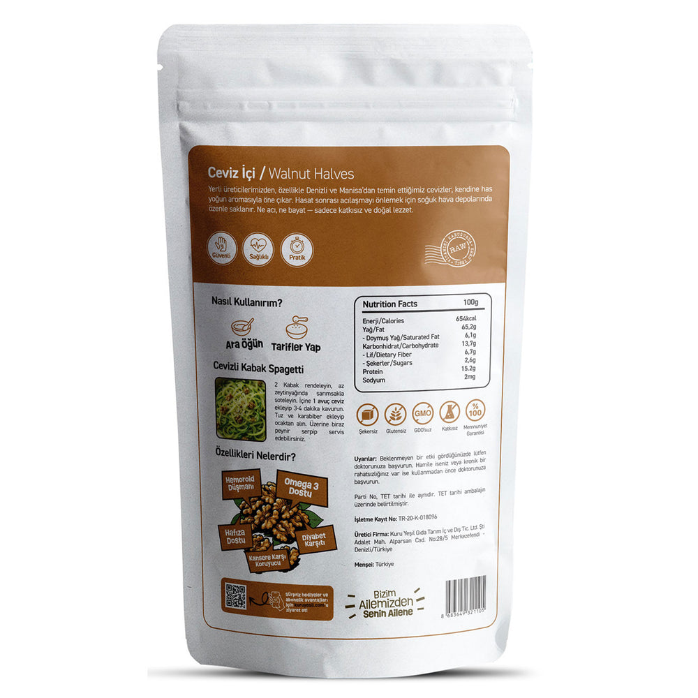 • Yerli menşei: Türkiye’den seçilmiş ceviz içi